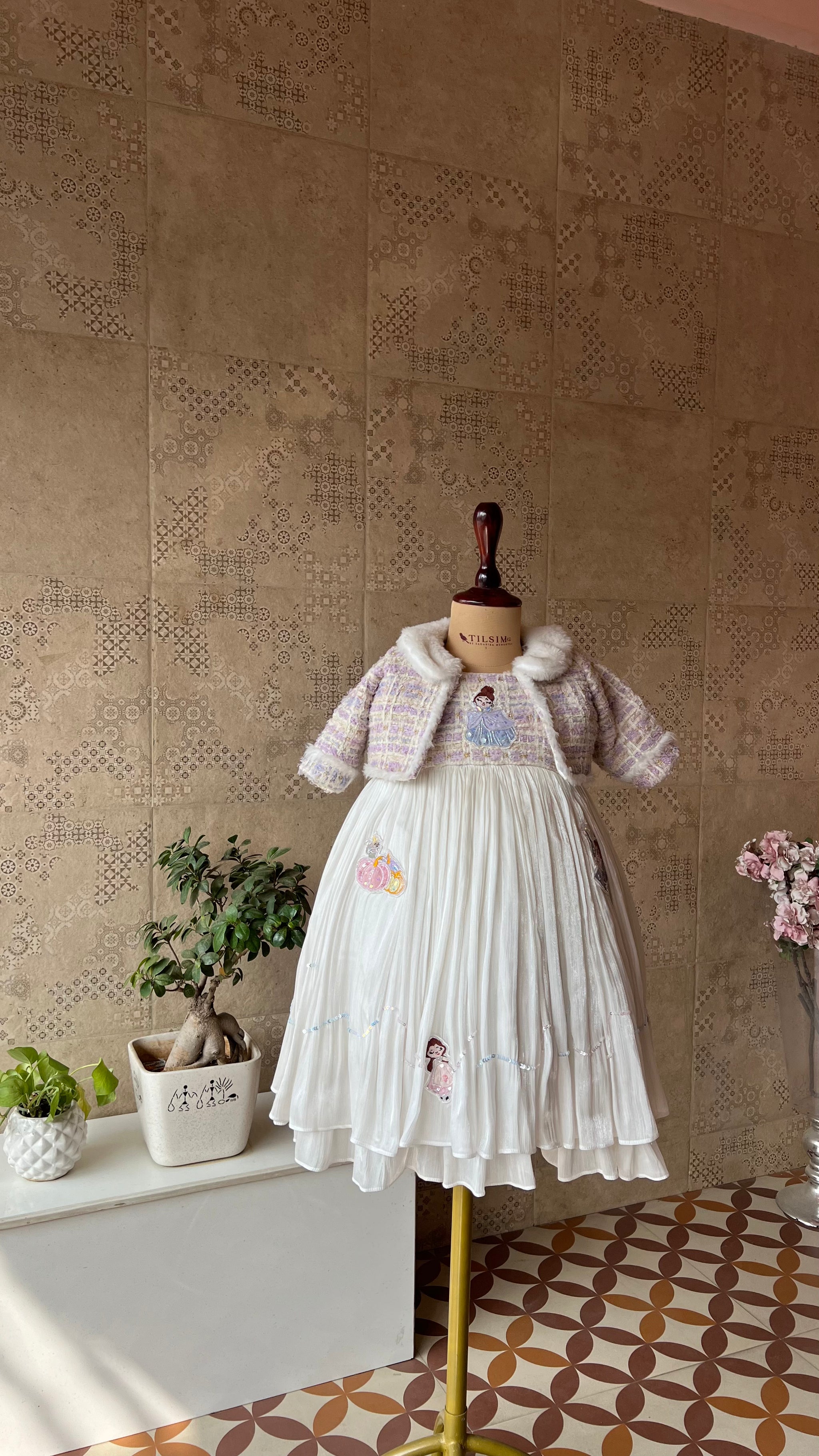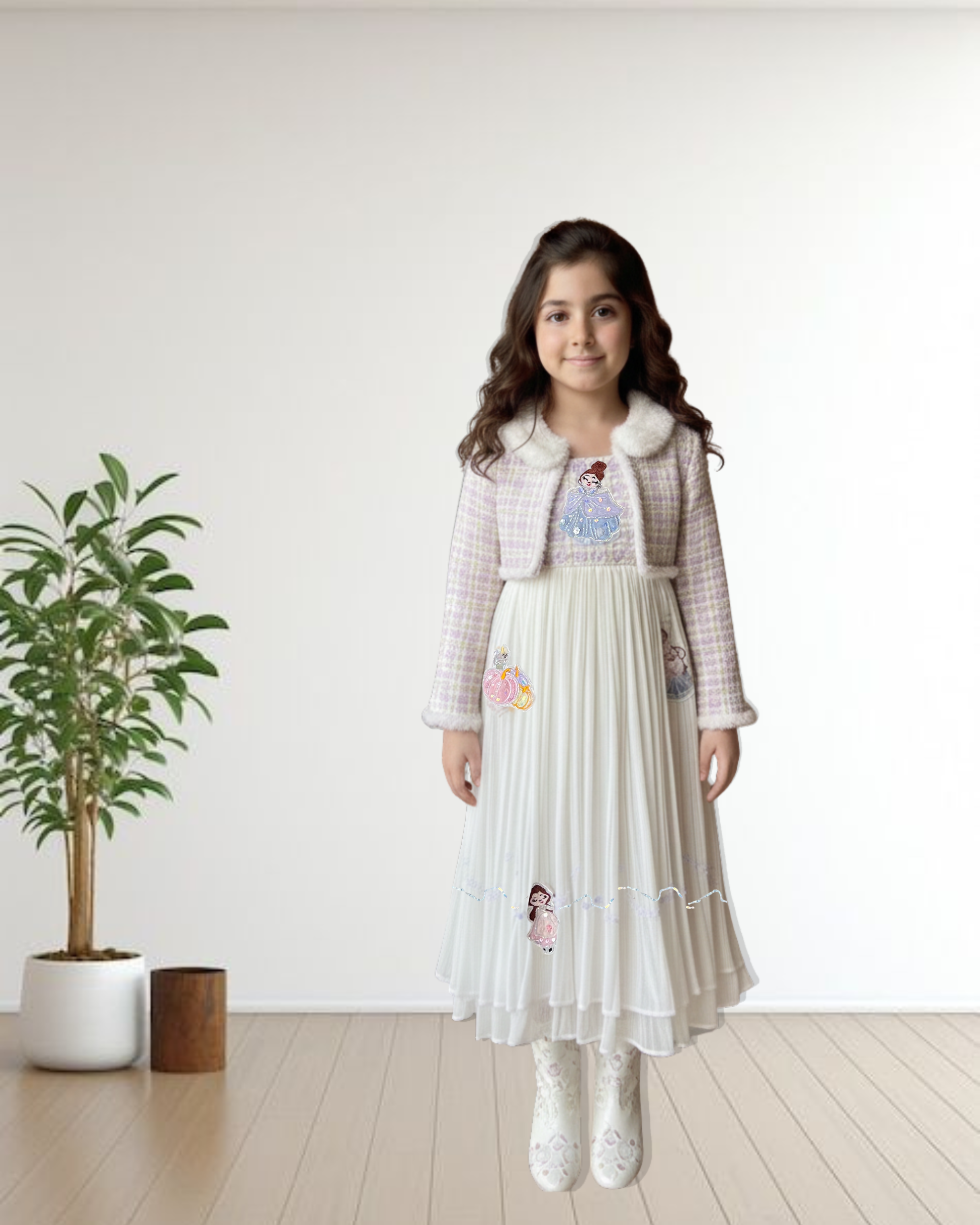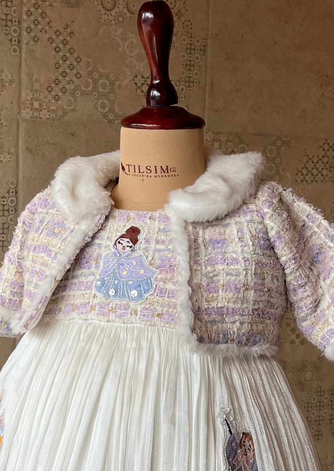 A timeless tweed silhouette paired with soft elegance—this classic dress features delicate detailing, a graceful flow, and a charming tweed jacket for a refined, storybook look. Perfect for special occasions, winter festivities, and heirloom moments, it blends vintage charm with modern comfort for your little one.